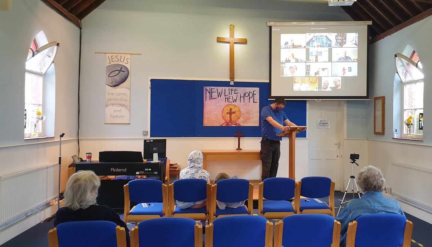 Due to the need to maintain social distancing and our small building we can not accommodate a full congregation yet. So most of us will remain worshipping online. And being a COVID world, it’s all different: we must wear masks, not sing (but listen to recorded song instead); there is a 1 way system, hand gels and the whole service will be streamed to the screen. However we know wherever 2 or more meet in His name, God is there, it will be great to rest in His presence.